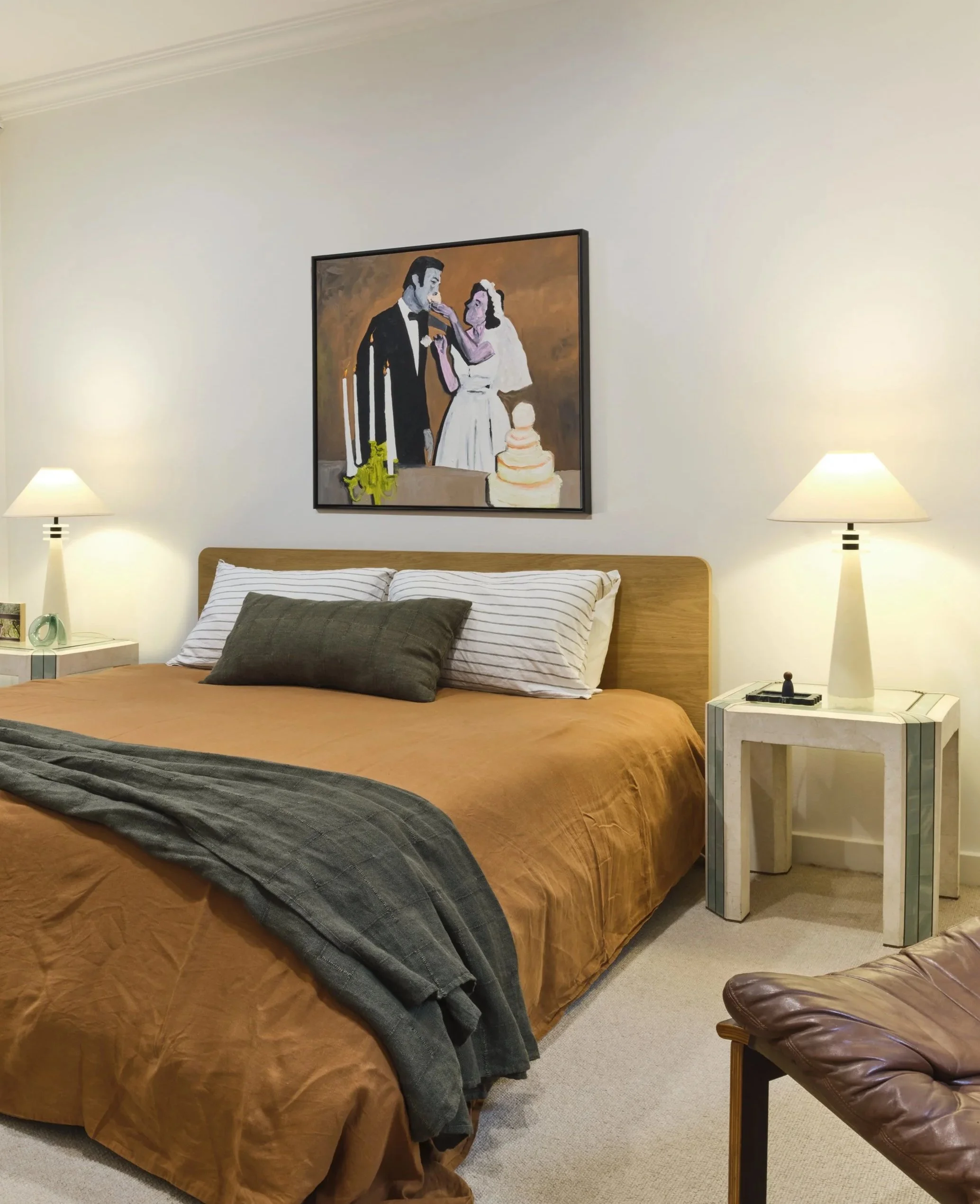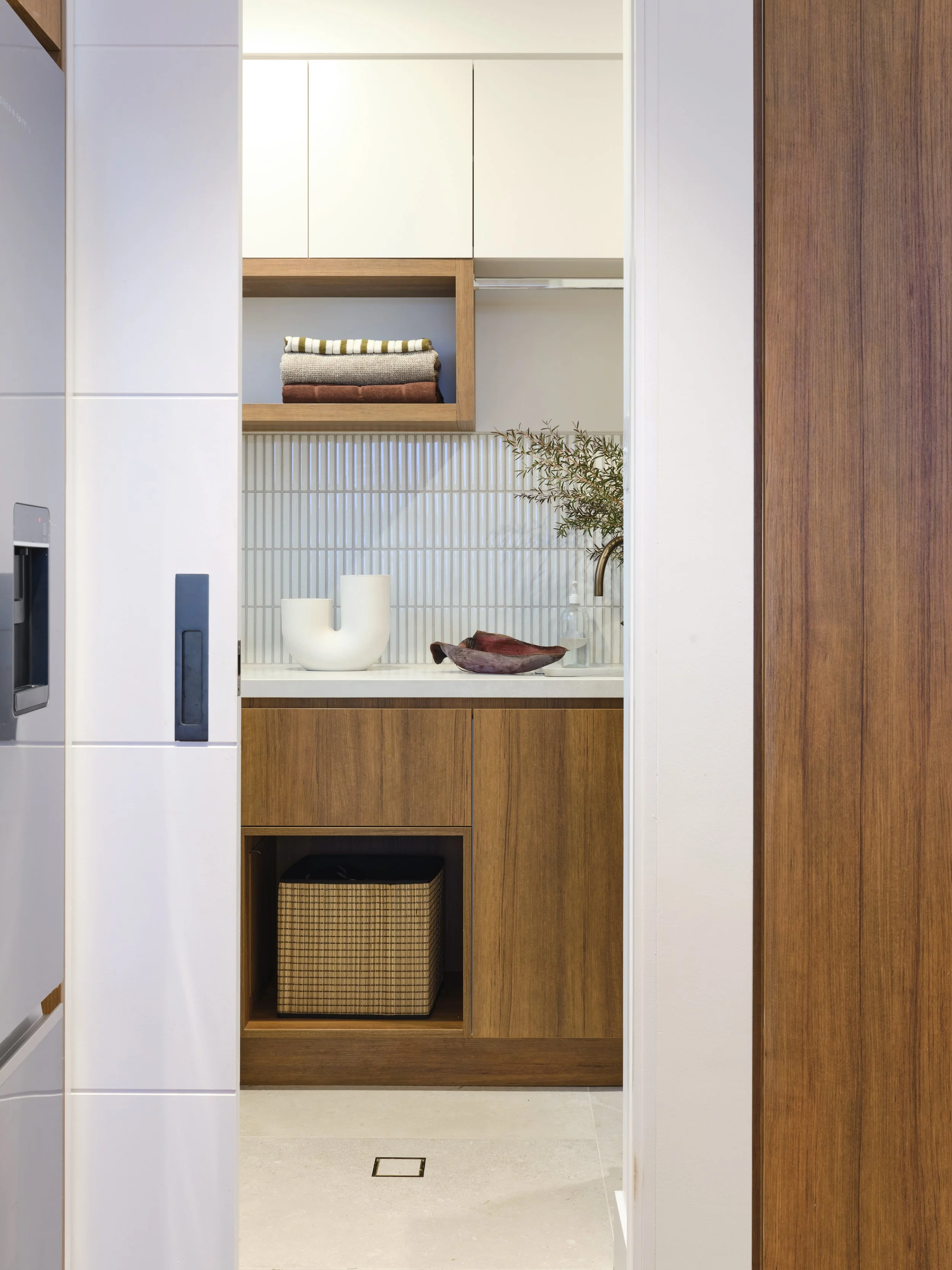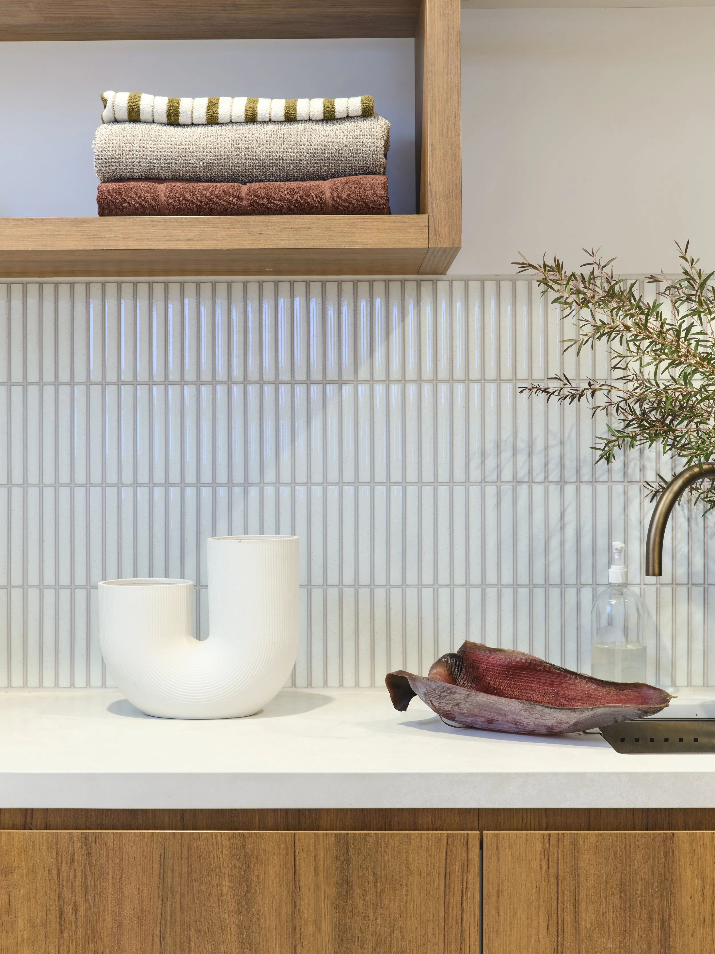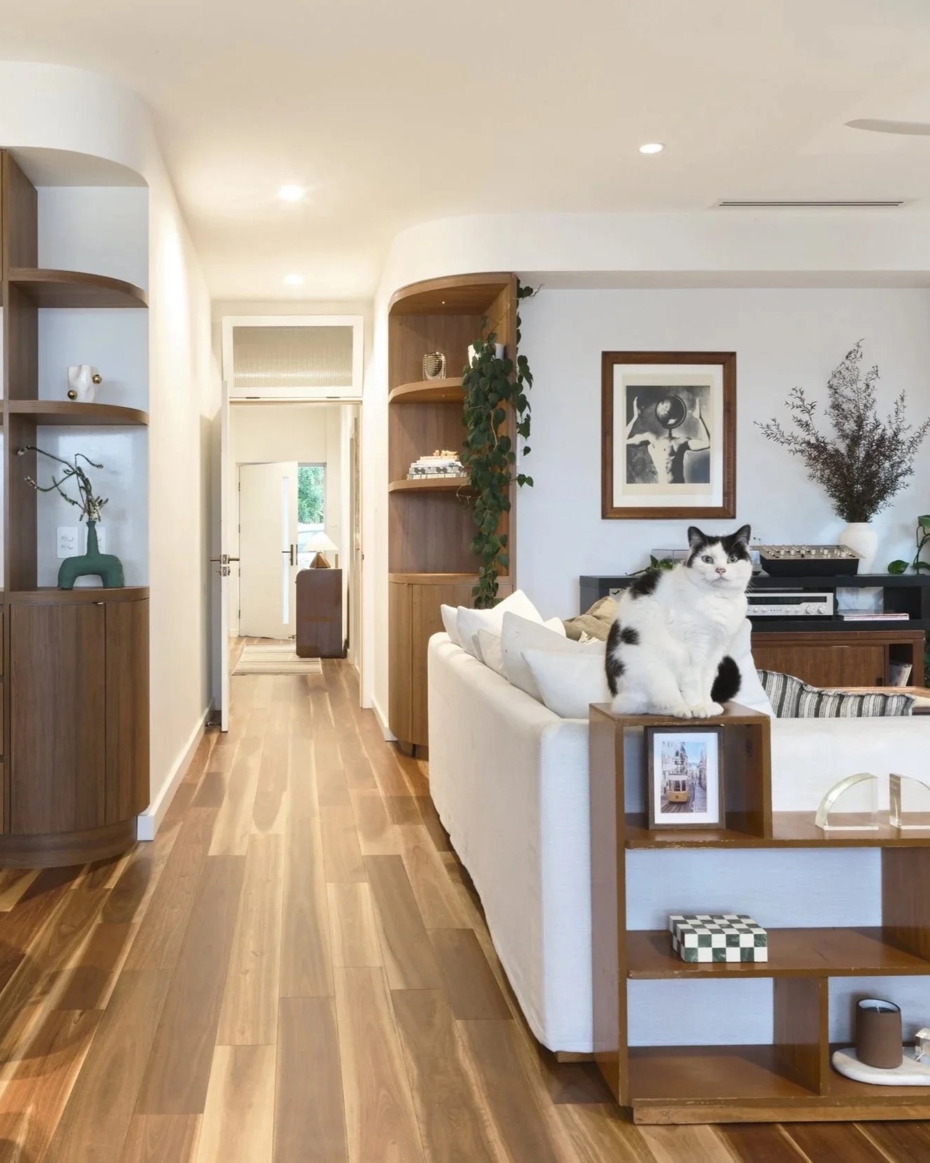 Warm materials, brave choices & an open minded approach allowed the clients existing furniture, music station & collections to sit naturally within the new architecture and create a layered & deeply personal space.